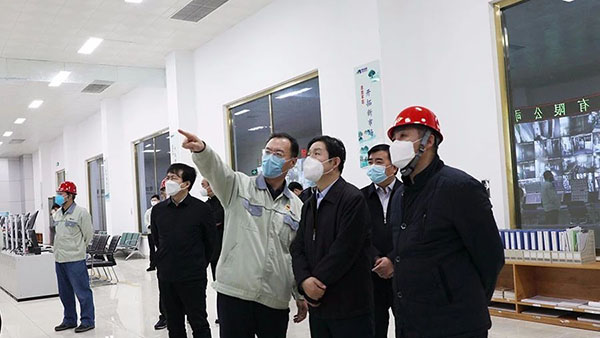邊祥為一行參觀了明泉科技中央控制室和職工餐廳,深入了解集團疫情防控、安全管理、生產運營、員工生產生活等情況。