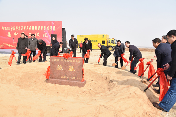 開工儀式上,明升達公司董事長孫慶利介紹了項目基本情況,寧陽經濟開發區管委會主任于師義作表態講話。隨后,出席儀式的領導為明升達項目培土奠基。